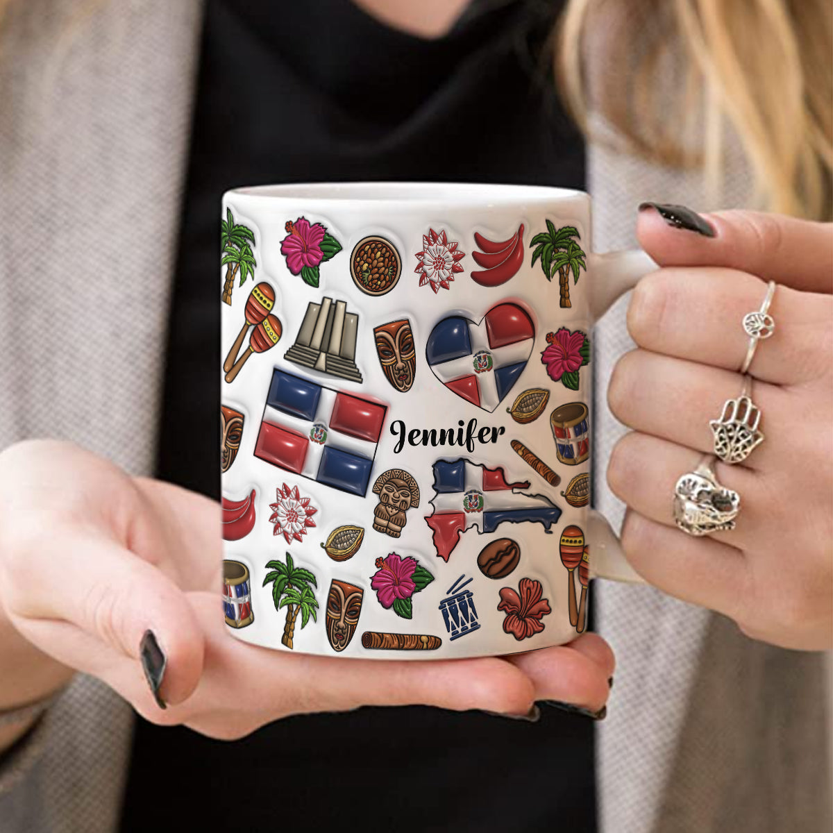 Custom Dominican Republic Coffee Mug Cup With Heart, Map, Flag. This mug is a perfect gift for the Dominican. Besides, you can customize name.