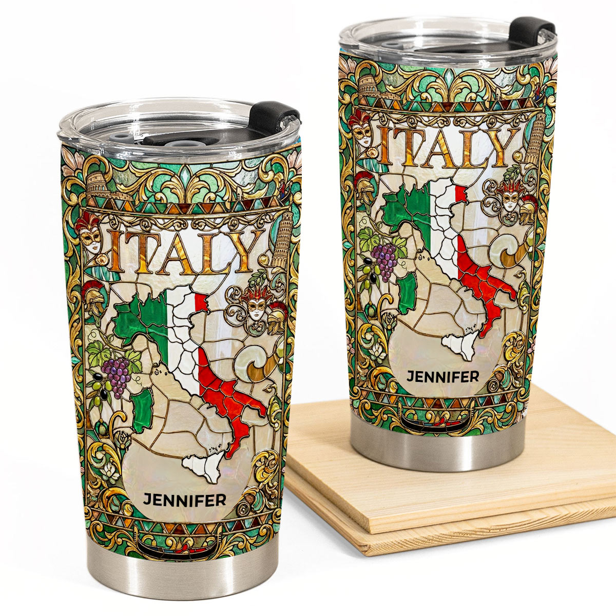 Custom Italy Italia Tumbler With Flower Patterns. This special design is for Italians. It can also be customized with a name.