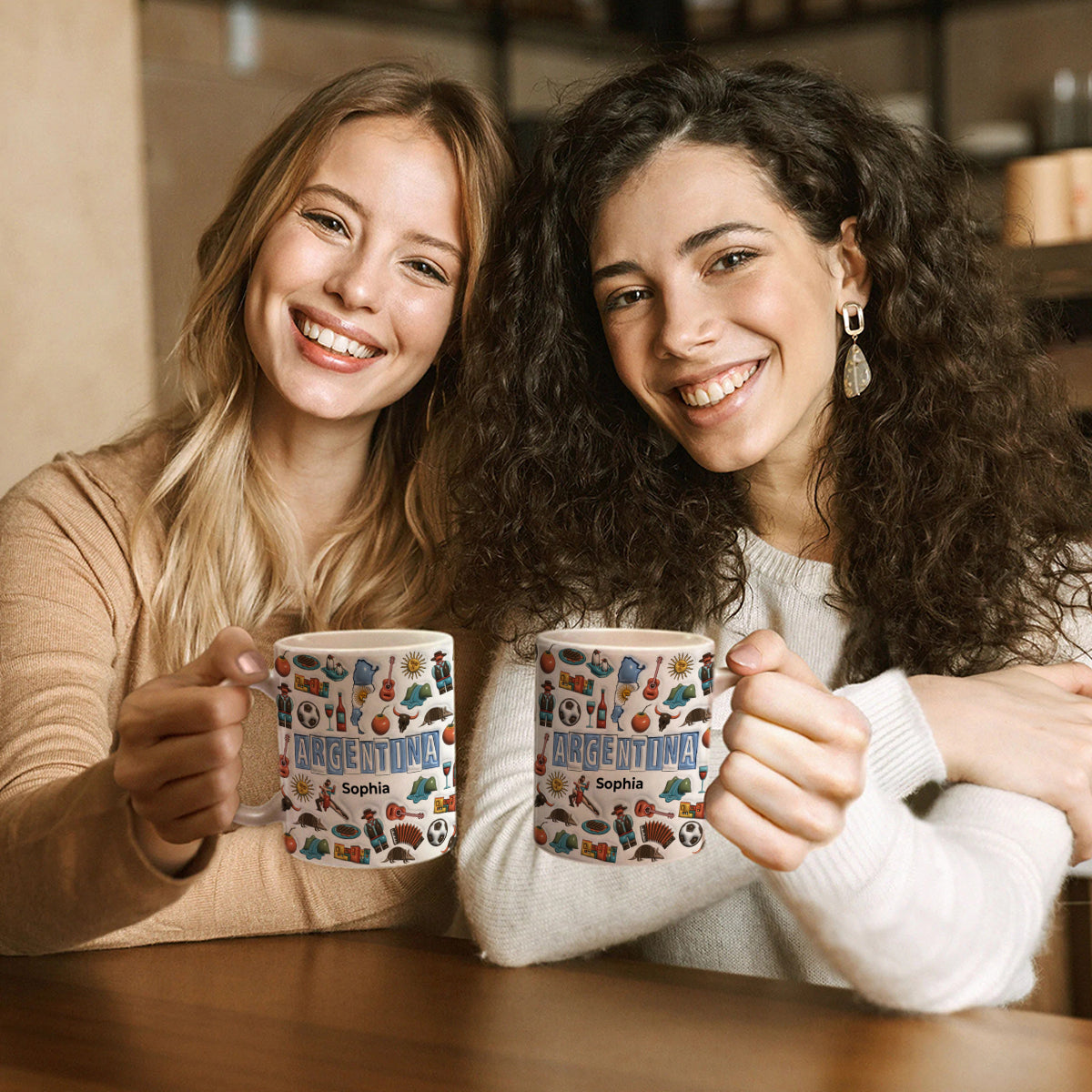 Custom Argentina Mug With Map, Flag. This mug is a perfect gift for Argentinian. Besides, you can customize name.