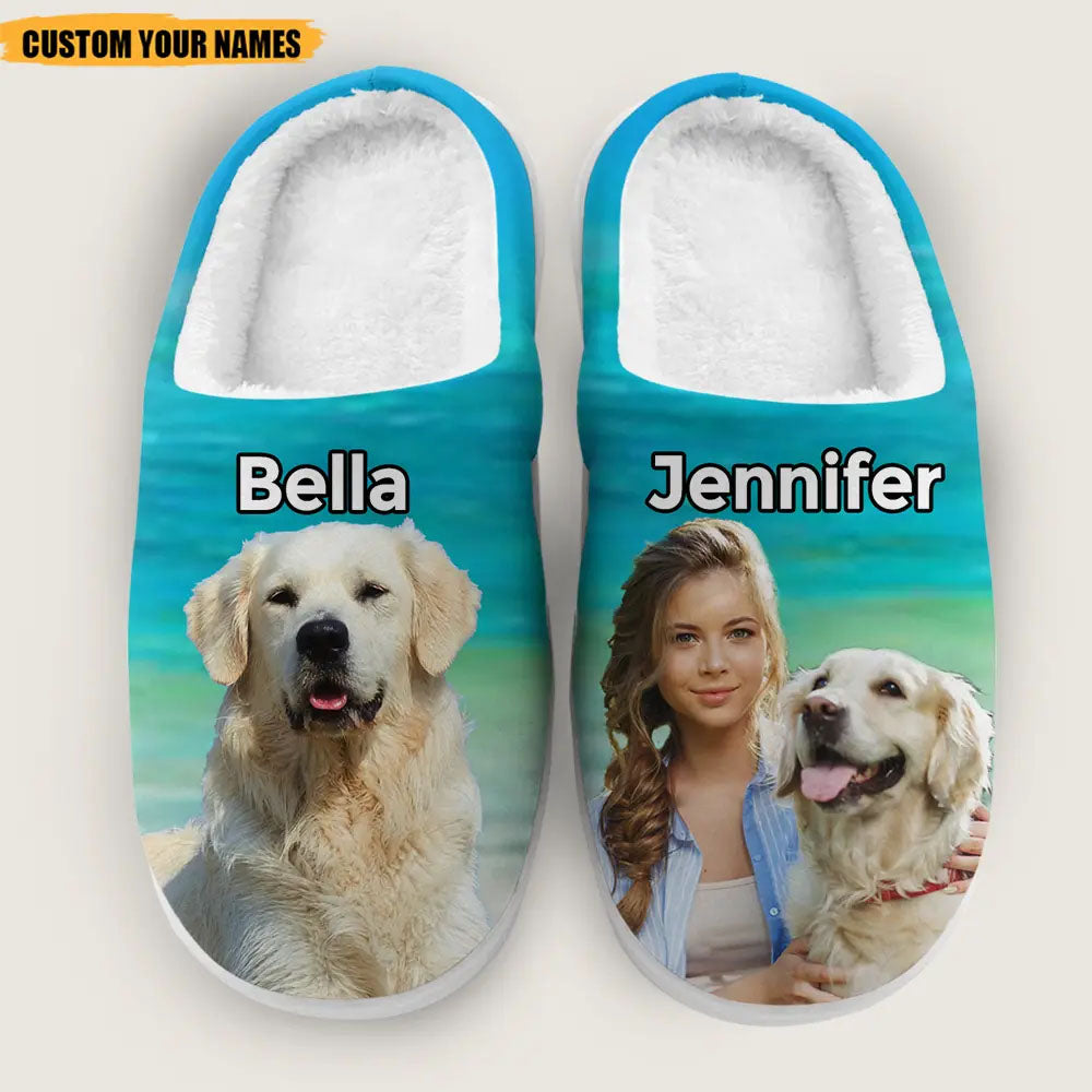 Custom slippers with pictures. This is a great idea for personalized slippers. You can upload your favorite pictures or choose some background.