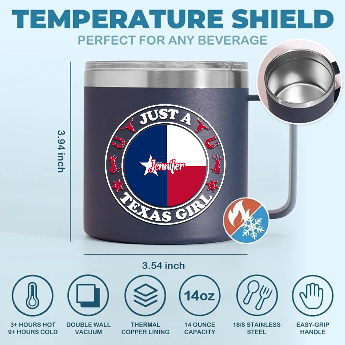 Custom Just A Texas Girl Tumbler 14oz With Your Name. Great custom tumbler 14oz for Texas girl. And you can customize any names that you want.