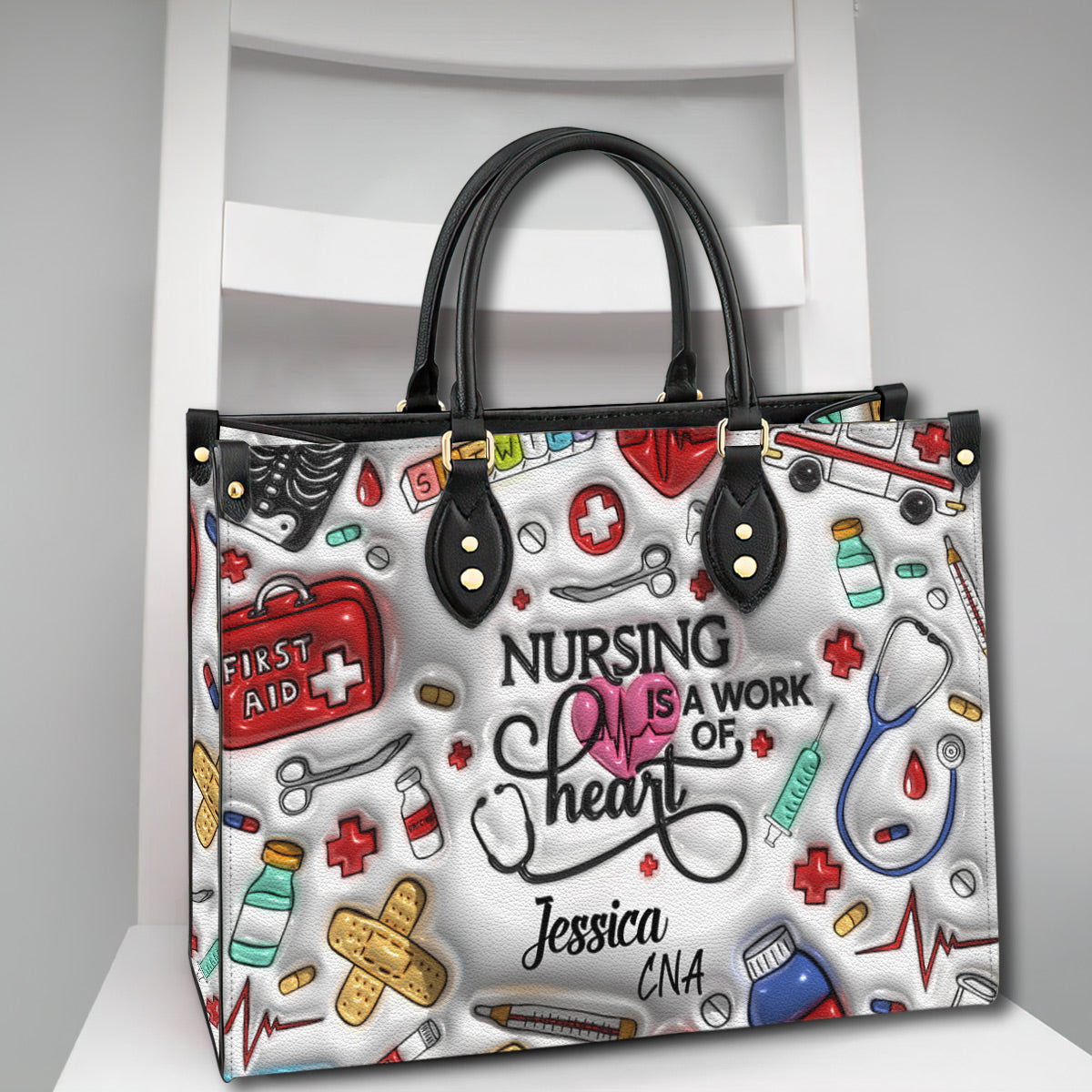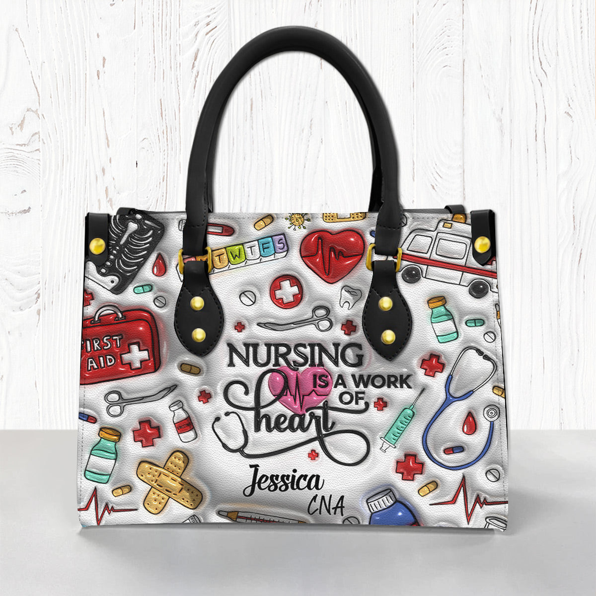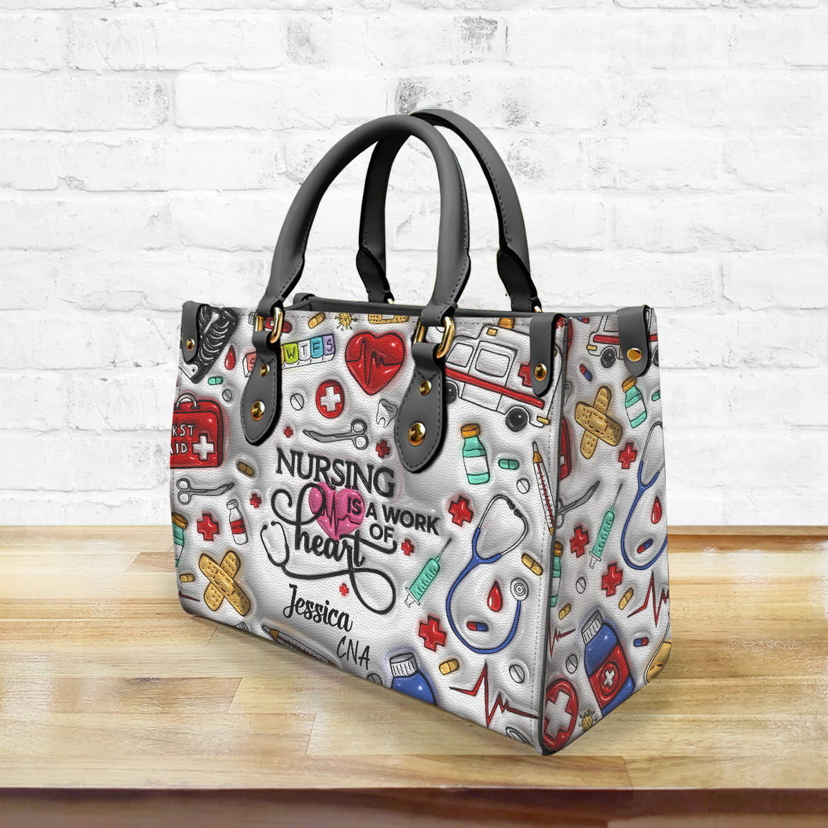 Nursing Is Work Of Heart Personalized Leather Handbag Purse is an awesome handbag designed for nurse. Besides, this unique nurse handbag can customize any names and job that you love.