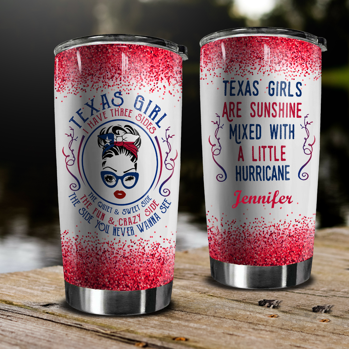 Texas Personalized Tumbler, Texan Girls Are Sunshine Mixed With A Little Hurricane
